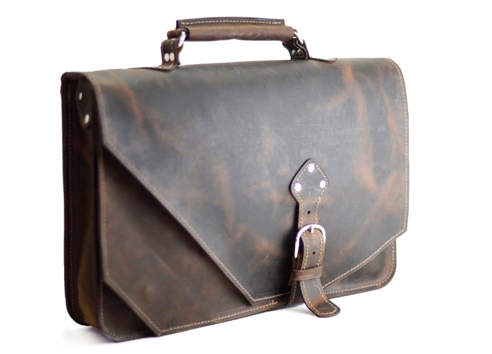 Mens Leather Briefcase Distressed Briefcase Laptop Bag Work Etsy
